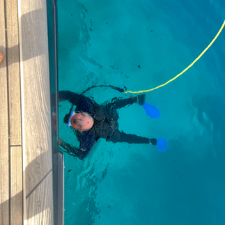 Anyone who knows Jeff knows he is a gadget whore, and the boat seems to offer his lust ample pleasure. His latest purchase: an air compressor to which he has connected a 60 foot floating hose and a regulator making it what is known as a Hookah. We (he) can now clean the hull, rudder, keel and waterlines without a lift out. It will also allow us to quickly fill our paddle boards and other water toys, but it is not a dive compressor, so he knows there is still shopping joy in his future.